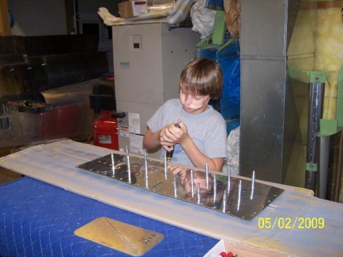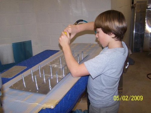 I am going to install nutplates on my floor system. Started to drill for nut plates and have some good help from my 10 year old.