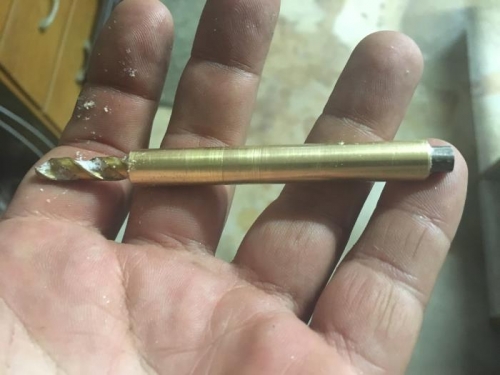Then I got my drill bit stuck in the brass bushing trying to drill it out. Didn't used enough Boelube I guess. Ordered a new one, but eventually got it unstuck and installed.