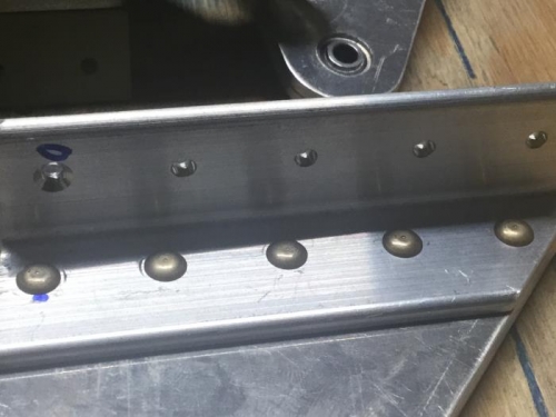 Attended the montly EAA Meeting. Took both Ailerons and Flaps for some more eyes on them. Found two external Rivet Gun induced smileys. Not bad enough to replace. One pull rivet head was too thin and needs to be removed. Need to remove a couple of smileys near both Aileron Counterweights from smileys during the pulling process. Otherwise, the concensus was that my work is good and no glaring issues. Rick mentioned I need to get the fingerprints off before they etch the aluminum. I did what I could as soon as I got home. The Empennage parts were VERY tough to remove the prints. The more recent parts were easy to remove.
