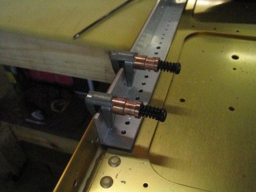 Countersinking the holes for the nutplates was a bit of a challenge. Ended up using a piece of aluminium angle clamped behind the flange of the spar to support the centre of the countersinging bit. Drilled the hole to #21 then used a #21 countersink to finish the holes. Worked well.
