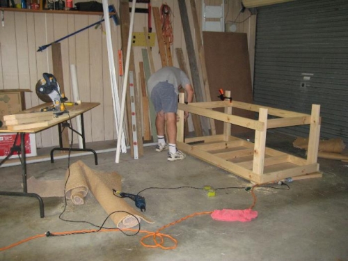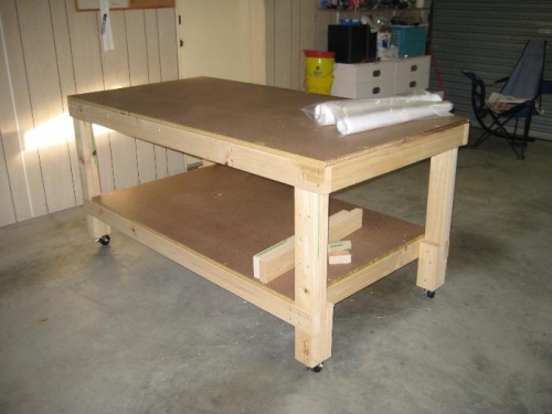 first step of the project was to build a sutable work bench. I chose the design form the EAA web site http://www.eaa1000.av.org/technicl/worktabl/worktabl.htm and found it quite easy to construct although somewhat more expensive than the site indicates (blame Australian prices for that). Built it on wheels to allow easy moving around my limited garage space. Should still be able to get two cars in if necessary although for most times the cars will live in the driveway. Still need to tidy up my existing workbench and try to soundproof the compressor a bit - don't want to annoy the neighbours more than necessary.