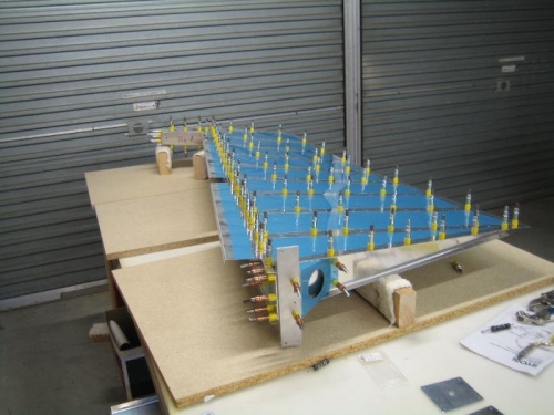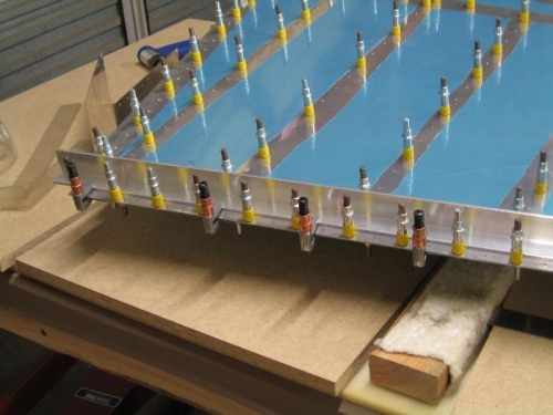 Started work on the rudder, shaping and fitting stiffeners and fitting the aex fillet to the trailing edge. Used a piece of aluminium angle to align the trailing edge and hold it straight and firm while drilling.