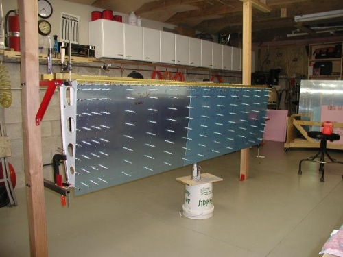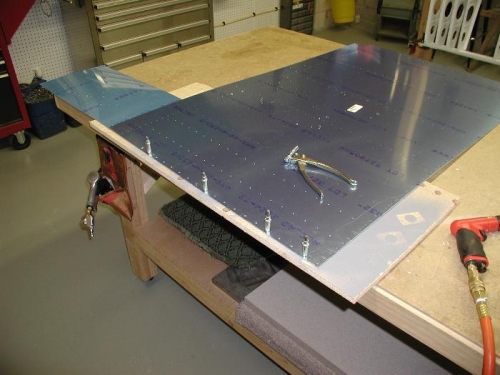 Drilled the doubler for the wing walk area and clecoed top and bottom skins on and drilled to size.