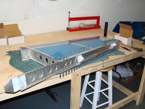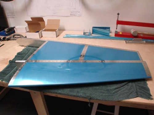 Today I riveted together the VS rear spar. I then riveted the skeleton for the vertical stabilizer and riveted the skin to it as well. I finally attached the rear spar to complete the vertical stabilizer sub-assembly.