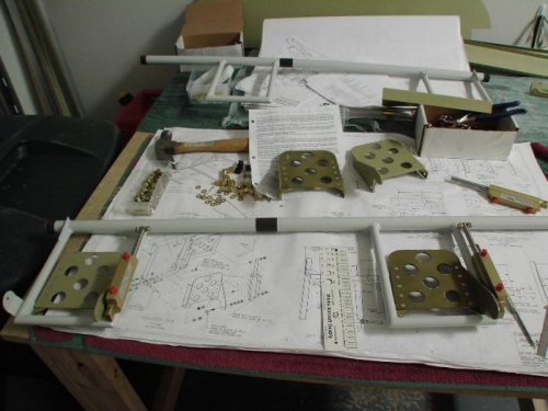 I used a back riveting plate to rivet each of the four brake pedal assemblies together. I then began putting the rudder pedal/brake pedal assembly together.