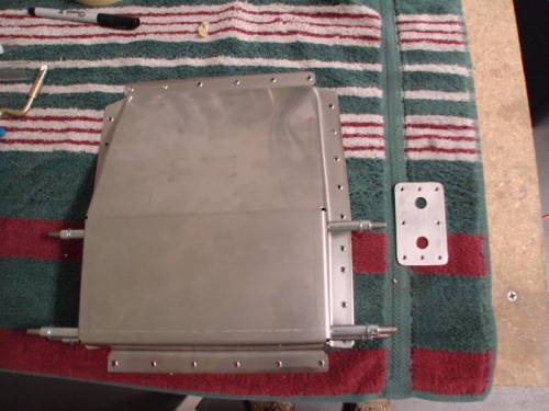 I fabricated, drilled and prepared the firewall brake line bracket and countersunk it for riveting. I also match-drilled the firewall recess to the firewall, then deburred and dimpled all the holes.