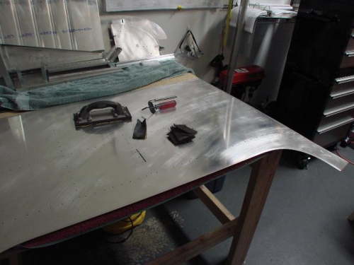 I removed the blue film from both the forward fuselage top skin and the aft fuselage top skin. Using deburring tools, sandpaper and scotch-brite, I deburred all the edges of both sheets so they could be primed.