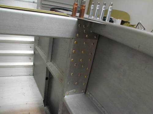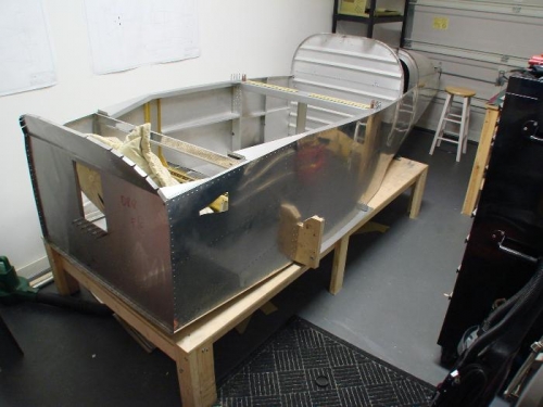 Sean came over and helped me shorten the table I'm using to support the fuselage so that I can work without using a stepstool. He also bucked while I drove some of the remaining rivets in the F-705 bulkhead side channels.