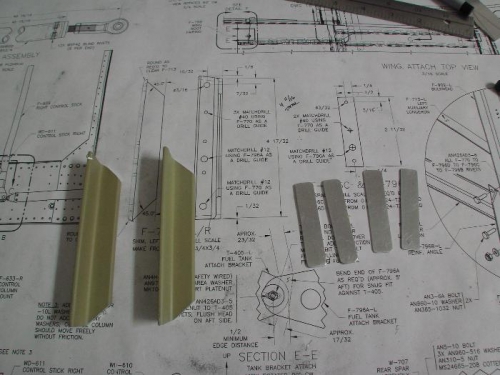 I fabricated the F-796 reinforcement angles and the F-796 spacers that will support the fuel tank brackets from the inside of the fuselage.