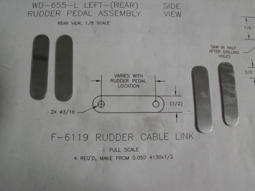 I fabricated the four rudder cable links that will be required for attaching the rudder cables to the rudder pedals. I'll drill the attachment holes later.