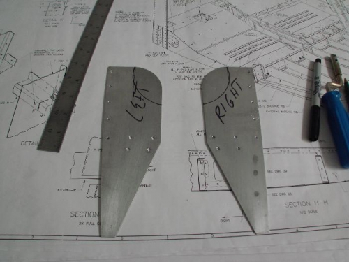 I continued through the slow-build plans verifying the pre-skin work up to the "fuselage and longeron details." Here, I began working on the canopy side rail gussets. Since I'm building a slider canopy model, these need to be trimmed. I measured and marked the 2" radius that will be cut from each gusset.