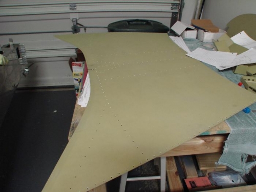 I went back and deburred and dimpled the forward top skin, the underlying gusset, and the skeleton of the fuselage where these would attach. The side ribs still remain to be done.
