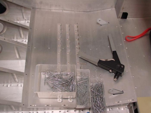 I completed the blind riveting of the aft seat floors after drilling and deburring the remaining holes.
