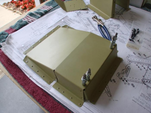 I fitted and installed the covers for the forward cabin fuel lines, heat baffle, fuel valve, etc. Most of it just needed various nutplates installed and screw holes drilled after positioning.