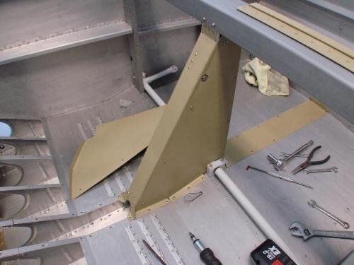 Also, the flap actuator covers had to be screwed in to match drill the backrest brace. Once that was drilled I installed the nutplates in the backrest brace where the aft cover screws would go. I also used a unibit to cut away part of the port cover where the actuator motor attach bolt came through.