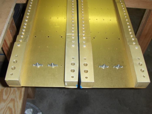 Tie Down Brackets - 1.5 hours First thing I did tonight was countersink the spar and attach more nutplates, but this time on the spar web at the inboard end.