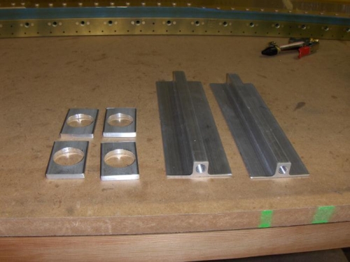 3/10/2008 Tie Downs - 1.5 hours Tonight I finished fabricating the plates that go behind the tie-down brackets. I also got the first hole drilled in the brackets.