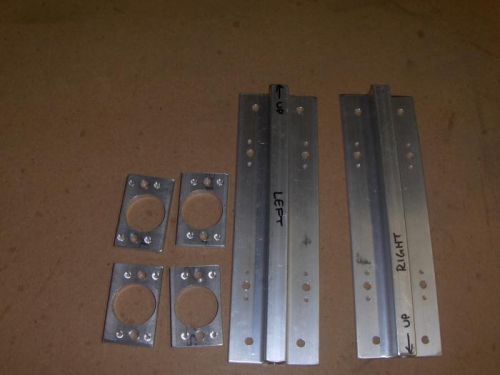 Tie Downs - 2 hours I spent the day finishing up the tie down brackets. After a lesson (to me, by me) in deciphering the AN hardware codes, I back drilled the tie down brackets to the spars, then back drilled for the nut plates. The holes in the spacers aren't exactly centered, but there's nothing I could do - they were all the way up against the spar bars. I then deburred and primed.