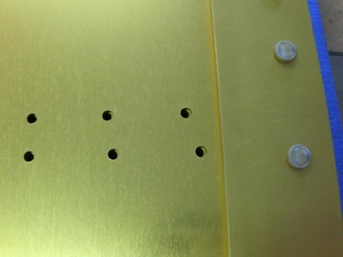 While back drilling the tie down brackets, I noticed some misaligned holes between the spar web and the doubler plate. This is a misalignment in two parts that come pre-joined from Van's. These holes are where the inboard and leading edge ribs attach to the spar. I have emailed them with the photo shown below for a suggestion on what to do. I'm also posting this on VAF.