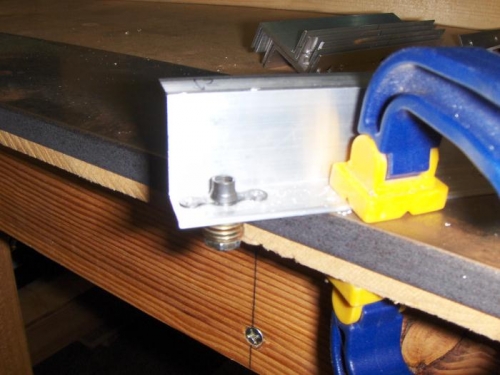 8/02/2008 Tank Z-Brackets - 1.5 hours Today I riveted the nutplates to the Z-brackets. First I had to countersink where the rivets went. I also drew my lines on the fore side of the Z-brackets that will hopefully line up with the holes in the rear baffle.