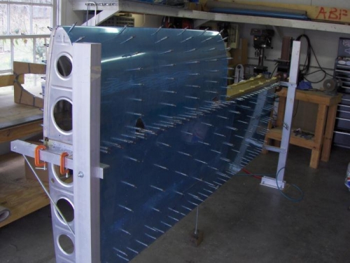 Then, I installed the main skins (top and bottom) and match drilled them to the ribs.