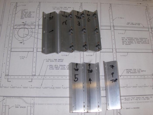 3/10/2009 Left tank z-brackets - 2 hours Last night dad and I worked on the Z-brackets for the left tank. We are using Dan Checkoway's method again (we did on the right tank as well) for drilling the z-brackets. For more on Dan's method, see my entry for the right tank z-brackets HERE.I ran out of nutplates and will have to run by Aircraft Spruce tonight to get some more, so we called it a night early.