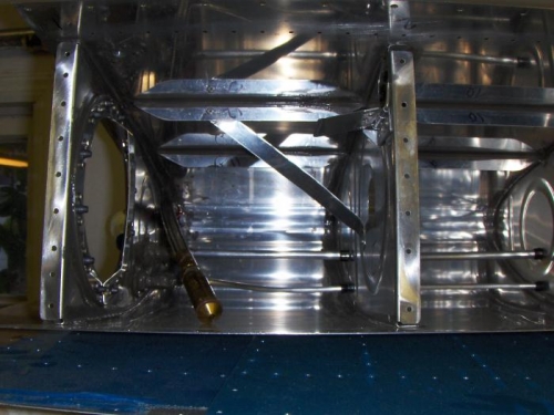 Here are some updated shots of the tank. All she needs is to have the rear baffle installed. The second shot shows the inboard bay of the tank, and all the stuff that goes in there (flop tube, anti-hang-up brackets for the flop tube, trap door, etc.)