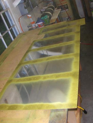 9/30/2009 Wing Skins & Leaky Tank - 2 hours Last night I finished prepping my last wing skin - the lower outboard one. Debur, dimple, prime: