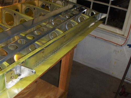 1/13/2009 Wing Skins - 4 hours Last night I got dad in the shop and we knocked out riveting the outboard top skin to the wing. Look ma, no clecos!