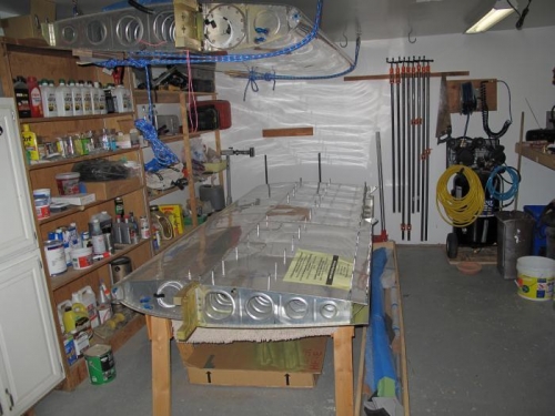 Transported to garage on elem ave, may take a bit to get going, hopefully not long (six months is what it took) I will add the first photos of wings shoehorned into my Carage. Some organising left to accomplish, but mostly what you see is wh.... you get it. The control surfaces occupy my basement and here in the carage you'll find only wings and tools. Wings nearly complete I will be ordering my fuselage kit and have to get the remaining wing details taken care of prior to its arrival. whew.