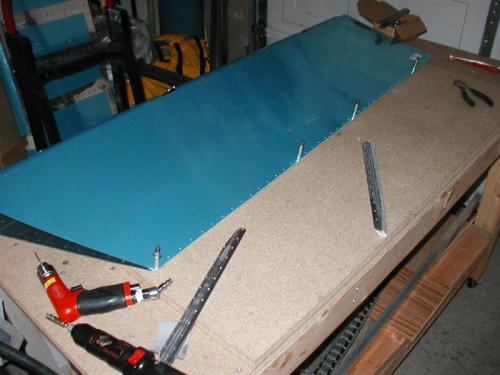 I decide to rebuild the right elevator because the edge won't close. I could drill out 100+ rivets but I think that would weaken the structure. Also I have a couple of dings that I can get get rid of with the new skin. Mostly I want to replace the skin. The other parts aren't that expensive. I do need to take it apart enough to get the horn off.