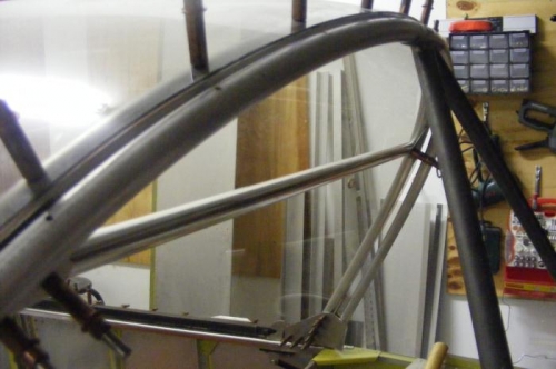 The above align was a significant improvement but still meant that the canopy arms impacted the latching mechanism. Killing two birds with one stone, we installed a horizontal brace across the rear canopy hoop which increases the rigidity of the canopy, provides a handle to pull the canopy downwards with (when seated) and ensures that the width of the canopy frame is sufficient to push the canopy arms wide of the latches. When installed the canopy closes without impacting the top of the latch arms.
