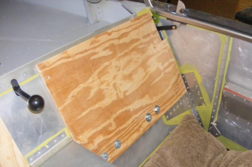 On the kit the pilot and co-pilot seats have no back and rather an access hole to the rear fuselage psumably for maintenance however there is an under fuselage access hatch. I used two pieces of the original pack crate and fashioned two seat backs which are held in place by two hook shaped pieces of aluminium. Cut outs were made in the seat back to allow for the canopy locking mechanism to opate without obstruction.