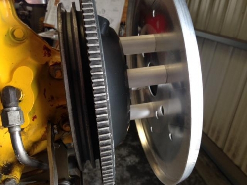 I have to know the location of the spinner to set the cowling in the right location. After doing a lot of research I went with Vans instructions. If installing a constant speed prop make a spacer 2 1/8" long. I chose to use 3/4" schedule 40 PVC, I cut four sections with my chop saw, measuring each one with my handy dandy mircrometer. Kind of funny, cutting with a chop saw and measuring with a micrometer. Anyway with a little sanding I had four spacers. Using four hardware store bolts I bolted the spinner aft bulkhead in place.