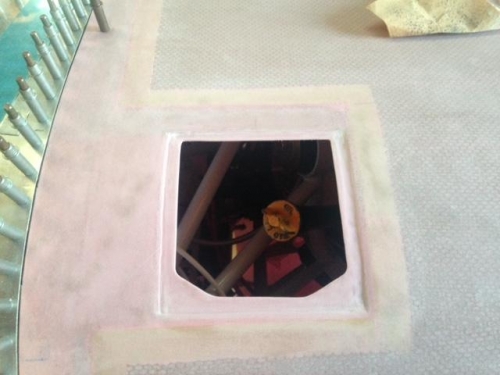 While scraping and sanding I also worked on the oil door opening. The photo does not show it very well, but I have cleaned up the edges of the depression where the door sits. There is about 1/8" space around the sides of the door. Once I have the hinge and fasteners installed I plan on filling that space so the door sits flush with the surface and has a molded in place appearance.