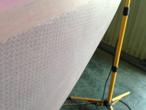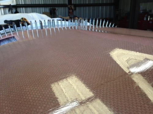 First thing this morning it was back to work on the cowling. Spent about an hour and a half sanding down the two epoxy applications from yesterday. The process filled many of the craters and I am down to working on the pin holes. After sanding I laid down another application of epoxy (image one.)