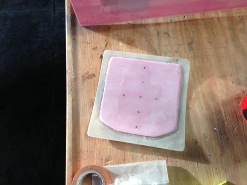 In between cowling epoxy applications I turned to other tasks. The oil door needs to be finished. Earlier in the week I epoxyed the remains of the cut out to the bottom of the door to add strength. The small holes you see are epoxy rivets. Small holes drilled in the bottom portion that fill with epoxy when clamped in place.