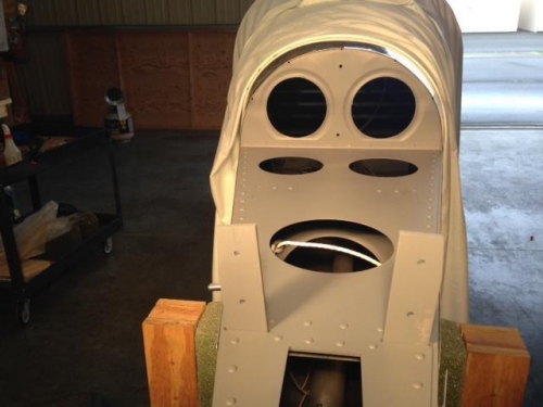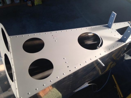 After all the work the top deck had some scratches in the primer. Probably from taking the tail off, setting tools down, etc; so I sanded and reprimed the top skin. The photos were taking after the work was completed. The second image makes the aircraft look like it has a serious twist, but just the illusion of the photo.