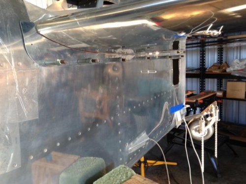 There are metal fairings that screw into the longeron. There are nine rivets that need to be tapped for screws. Of course when I was assemblying the tail section the plans said to rivet those locations and I did. Now I needed to drill them out and get ready to tap them. The rivet removal went fine, no enlarged holes. I needed to trim the metal fairings slightly to get them to fit, but that went pretty fast. The image shows them clecoed in place, I plan on tapping them tomorrow.