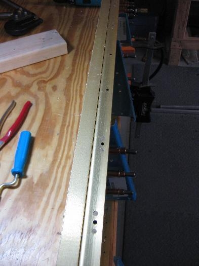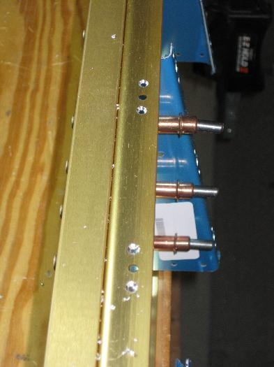 Guard weekend last weekend and people coming over tonight. Today will be a short day, but tomorrow will be an all day work-a-thon. Today I managed after fixing my mother-in-laws furniture to counter-sink and rivet the tops of center control section. As usual, after setting the counter-sink cage to the right depth the counter sink process went pretty fast and the rivets were 3-3.5 so I hand set them in just a few minutes. Easy work, the first picture is the top of the forward center section counter sunk ready to have nut-plates riveted and the second is the finished work. Added later... I had an opportunity to get back to the hanger, so went to work creating the web stiffeners and the control cover ribs. There are four ribs (you can see them in both pictures, they are blue) that needed some work. The two large ribs needed 1/4" holes drilled for bolts, rivet holes to align and drill, and nut plates to rivet. The two smaller ribs are riveted to the web on the back side of the center section. The web is just angle alum cut to the correct length and drilled to match the rivet holes on the center section. The web is riveted in place, but the smaller ribs are bolted in place with 515-8x8 screws. Of course, this means a k1000-8 nutplate has to be installed for each screw. I counter the front side of the web for flush mounted rivets as the front side of the web sits on the back side of the center section. All the ribs have fuel and brake lines running through them, so bushings had to be installed. Three bushings per rib. I drilled those holes to size for the bushing (5/8, 1/2 and 7/16.) After all the drilling and riveting of nut plates I am ready to rivet the ribs in place. Only a couple of tasks left over to finish the center section.