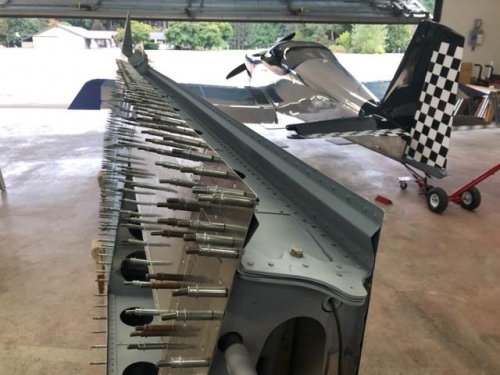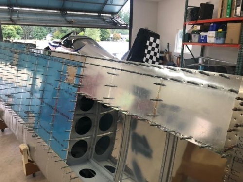 I used the same technique for the lower skin stiffener except that won't be riveted until the lower skin is riveted. I still need to install the pitot static lines in this tank, the fuel tanks and fuel lines on both tanks and install the aileron cable run in the other wing. Light wiring could be done any time.