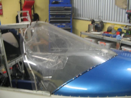 Riveted nose deck to hull with ABL 4-4 rivets. Ran a bead of Sicaflex along front of windshield edge and riveted windshield in position with a combination of ABL 4-6 and ABA 6-6 rivets. Oversized the holes in the Lexan and used nylon washers under each rivet head where it rivets through Lexan and stainless washers on the inside..
