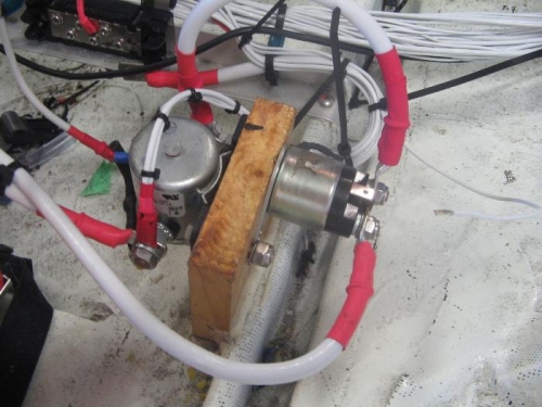 Decided to position starter solenoid in nose hatch as I didn't want the main cable "hot" while in flight.