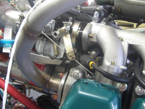 Reversed throttle arms due to pusher configutration. Engine will now go to idle if throttle returm spring breaks.