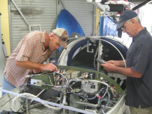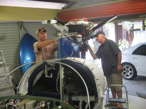 Paul Williams fellow Searey builder and Mark Davenport, LAME stopped by and conducted general inspection. Mark Inspected the engine fitting and suggested I curl ends of safety wire to stop snagging fingers etc. He also suggested sealing the ends of the firesleeve with hi temp silicone to stop oil contamination.. Paul suggested a better way to attach throttle cables and some wiring tips..
