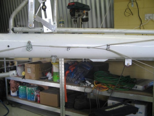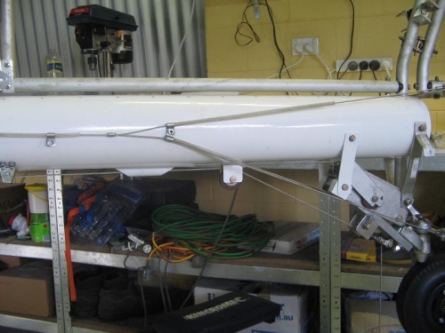 Attached rear rudder/tailwheel cables to boom tube with 1/4 ally rivets spaced with 2 x AN4 washers.