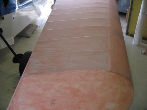 Applied 1 wet coat of Poly Brush to upper and lower fabric then ironed wingtip, leading and trailing edges for better adhesion at 250F