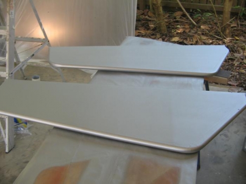 Sprayed two cross coats of Poly Spray to wings and control surfaces over 2 days. Used iron to iron down any pinked tapes that were lifting. Very few tapes needed ironing down and very few pinholes when applying the Poly Spray so very happy with result as I must have done all the Poly Brushing correctly.