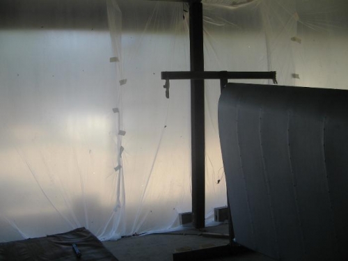 For the application of topcoat I enclosed the garage with plastic sheets to try and stop as much dust etc from getting in the paintwork seeing that it dries much slower than the Poly Brush and Poly Spray.