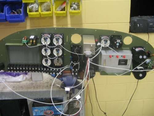 Started wiring instrument panel. Ran ground wires to engine gauges.